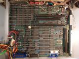 ボードは3つに分かれていて、メインボード、CPUボード、フロッピディスクコントローラ(FDC)ボードと思われる。 メインボードには手前側からCPU, FDC, Cバスのカードケージが刺さる。 FDCボードからFDDと背面の1MBフロッピーインタフェースにフラットケーブルが伸びることになる。 さらに、CPUボードにはROMと思われるドーターボードが載っている。