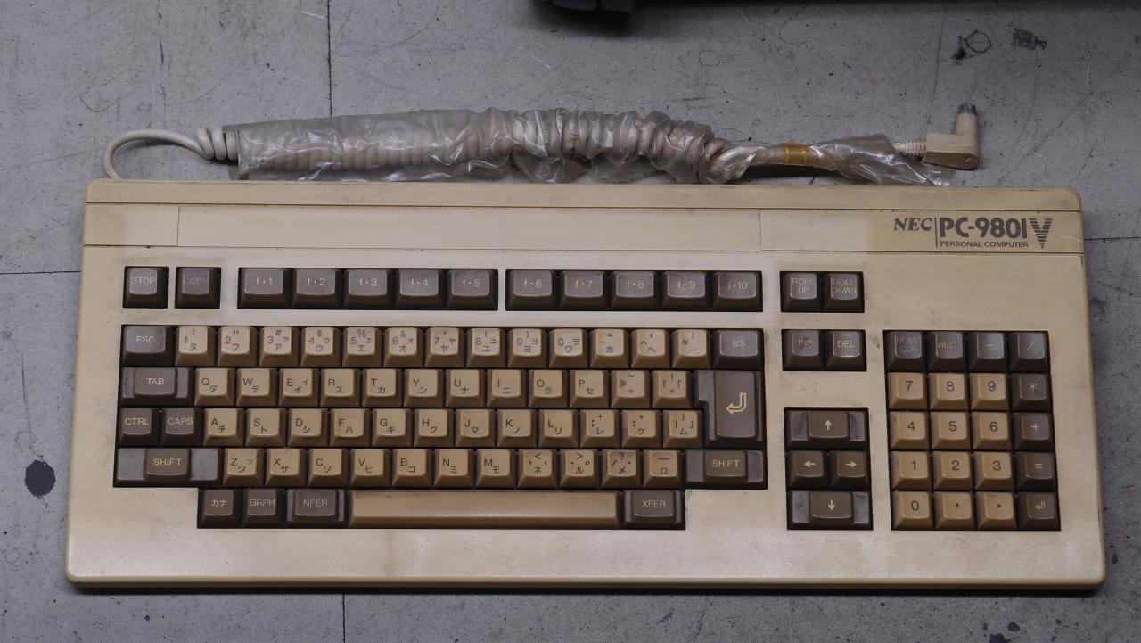 キーボードはPC-9801VXのものと似ているが、よく見ると枠の部分(端のキーからキーボードの端までのスペース)が少なくなっていて、微妙にコンパクトだ。